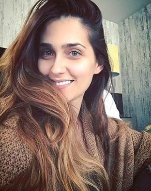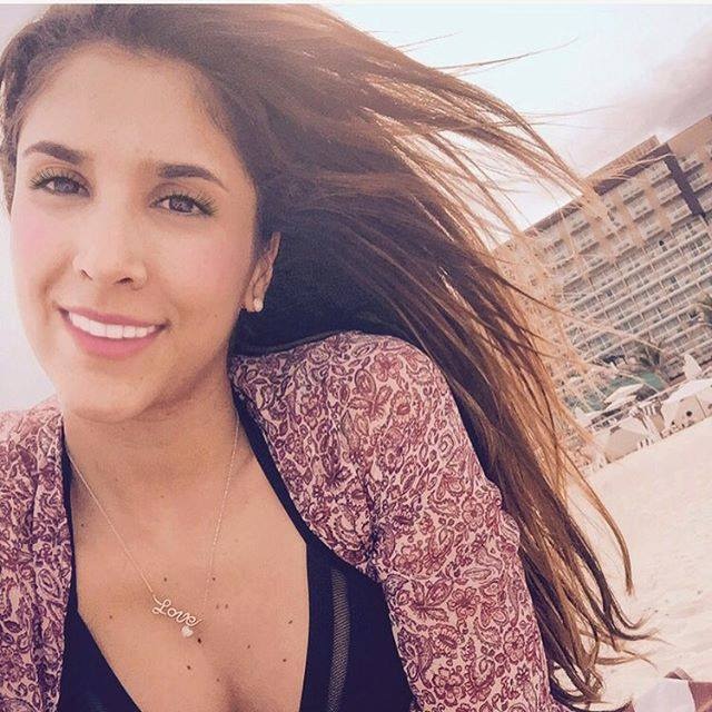 | Bà xã xinh đẹp của Rodriguez dịu dàng selfile trên bãi biển. |