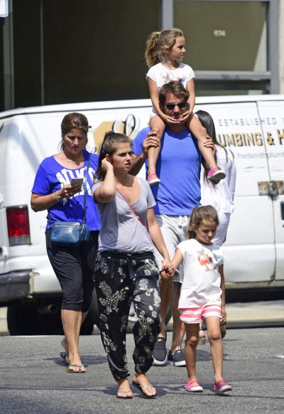 | Federer chiều chuộng cõng con gái yêu trên vai khi cùng cả nhà dạo phố. |