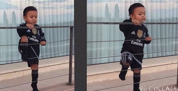 | Ronaldo vui vẻ bên cậu con trai Ronaldo Jr. |
