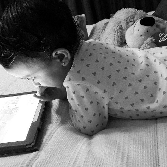 | Con gái nhỏ của Di Maria nằm dài xem hoạt hình ngày cuối tuần. |