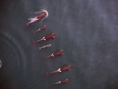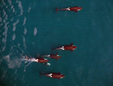 Cá voi sát thủ là loài sống chung với gia đình trong phần lớn cuộc đời. Chúng săn mồi và di cư cùng nhau. Gia đình cá voi sát thủ này gồm 2 con non 2 tuổi và một con non chưa tới một tuổi. Trong hành trình giám sát loài sinh vật khổng lồ này, những chiếc UAV của Cơ quan giám sát Đại dương và Khí quyển Mỹ (NOAA) phải bay cao để không gây ảnh hưởng tới hành trình di chuyển của chúng. |