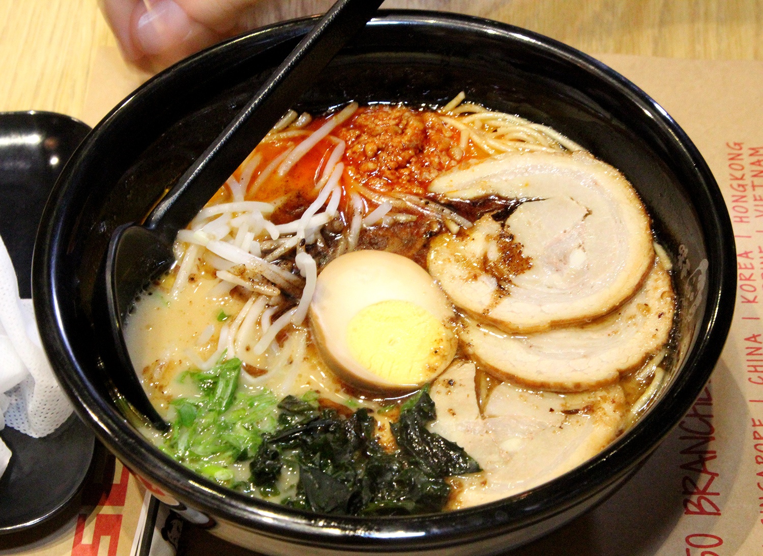 | Thí sinh phải ăn hết một tô mì "ramen" của Nhật trong thời gian nhanh nhất có thể. Mỗi tô mì có giá 128.000 đồng. |