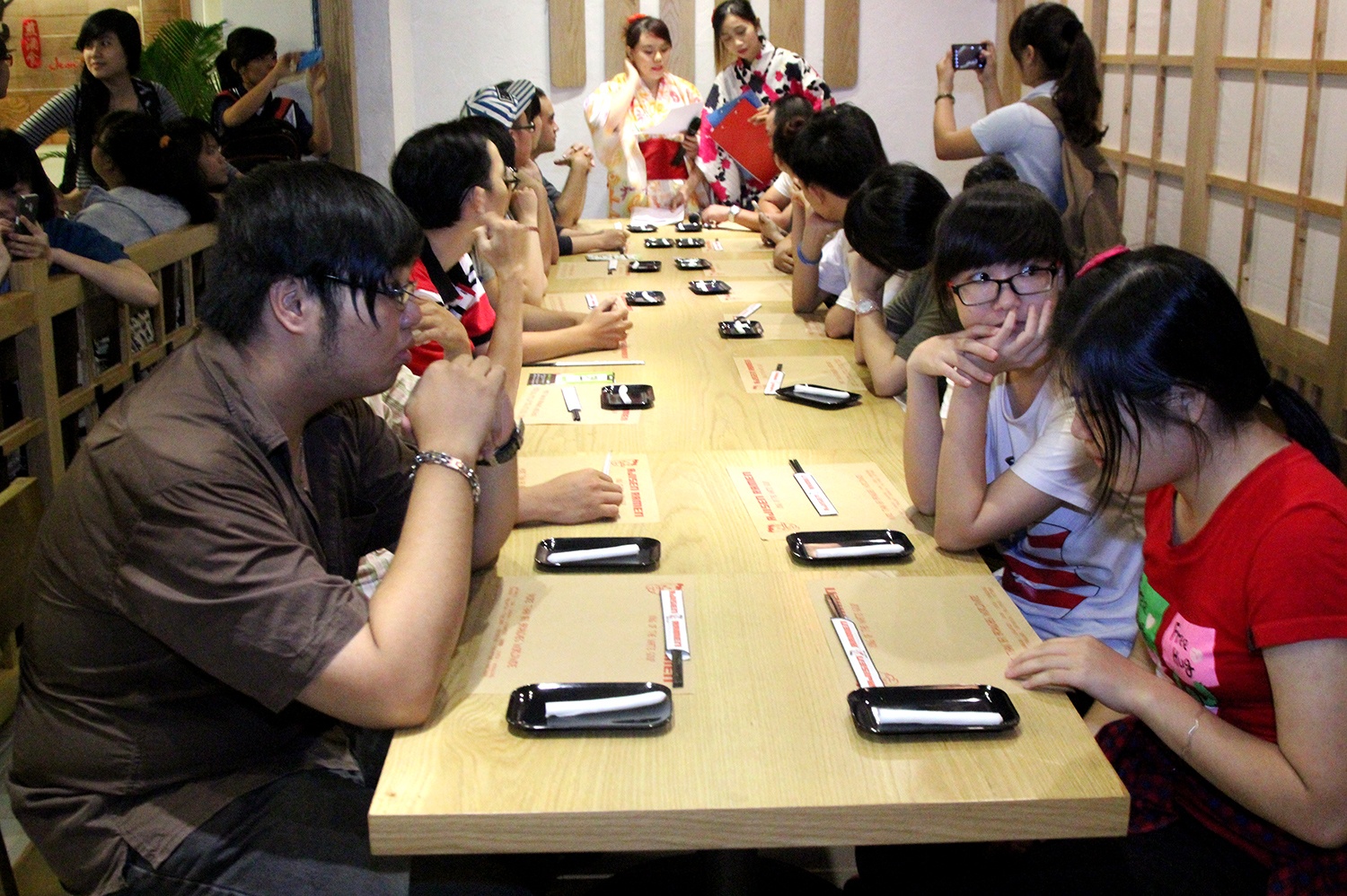 | Trong ngày thi đầu tiên, nhà hàng đã chọn được 16 thí sinh tham gia gồm các bạn trẻ, sinh viên, một số du khách nước ngoài. |