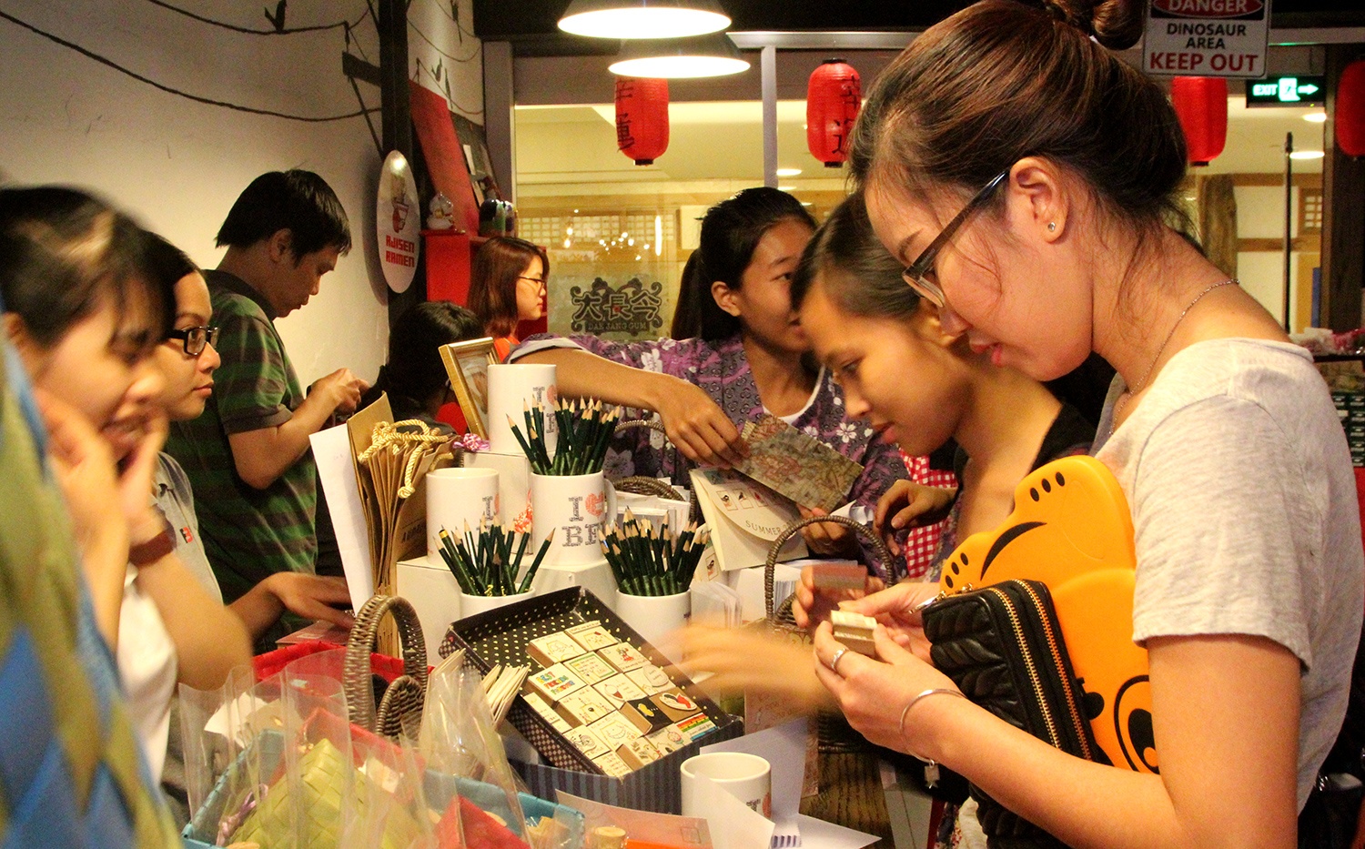 | Ngoài cuộc thi ăn mì, nhà hàng còn tổ chức lễ hội với nhiều gian hàng bán đồ Nhật thu hút khách đến tham gia. |