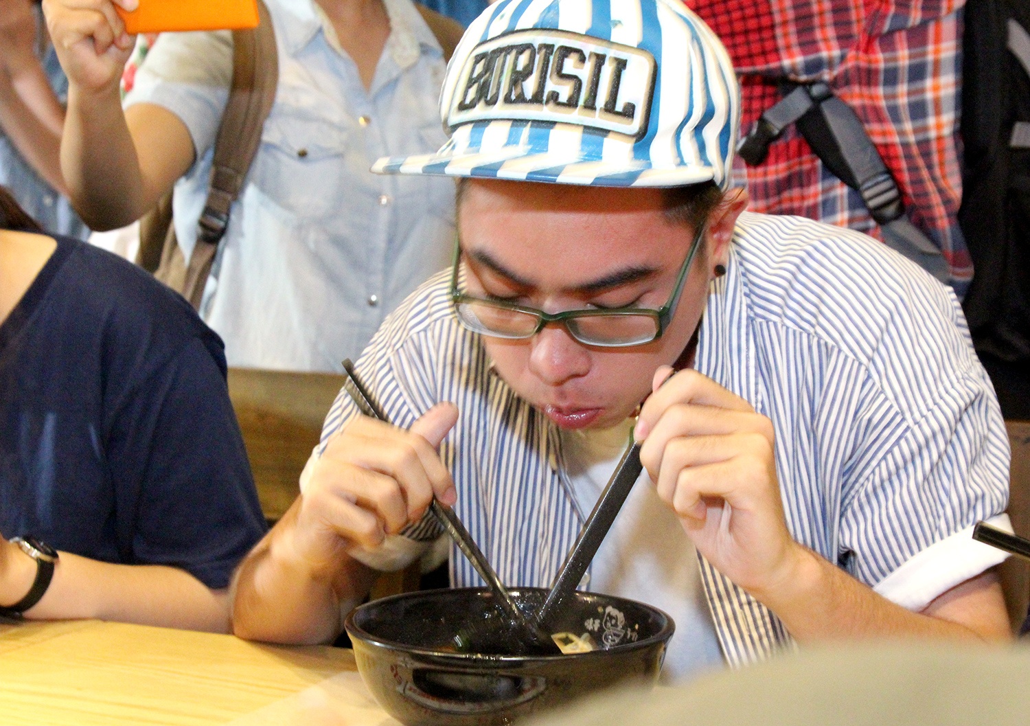 | Người thắng cuộc phải ăn hết nước lẫn cái trong bát mì. |