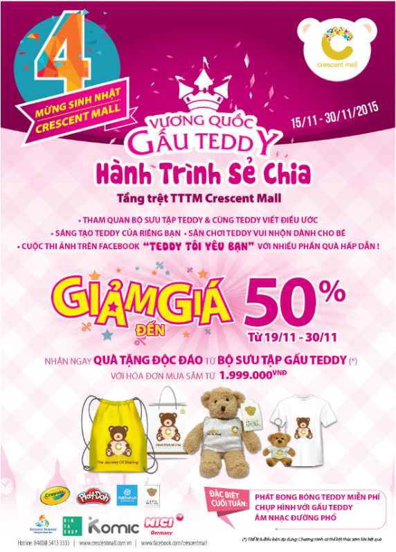 | Crescent Mall ưu đãi khủng mừng sinh nhật cùng cơn mưa quà tặng Teddy Bear (19-30/11). |