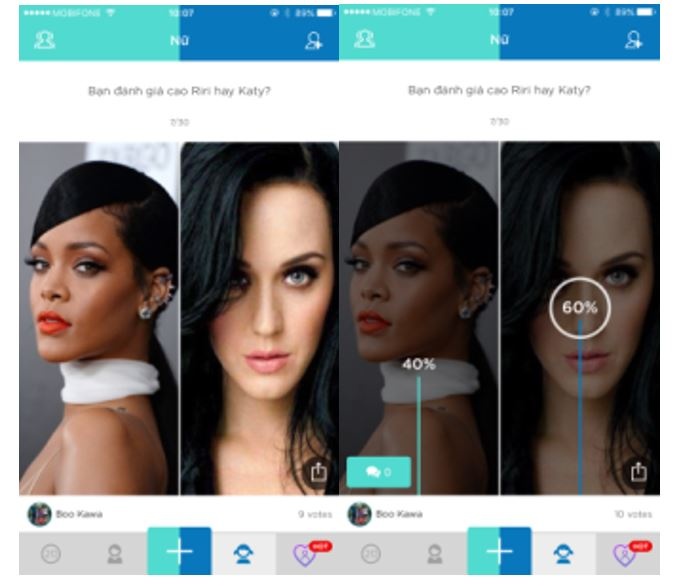 Các thí sinh được bình chọn trực tiếp trên app Left.Or.Right. |
