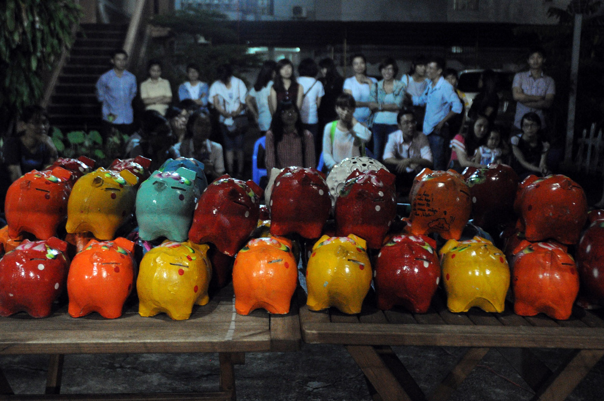 Buổi lễ đập heo quyên tiền ủng hộ người nghèo của CLB Vì Cộng Đồng nhân dịp Tết trung thu. Đây là một hoạt động thường niên mỗi dịp gần đến lễ hội trăng rằm. Trước đó 2 tháng CLB đã phát ra hàng trăm con heo đất đến các công ty, hộ gia đình, các bạn sinh viên…để cùng nhau “nuôi”. |