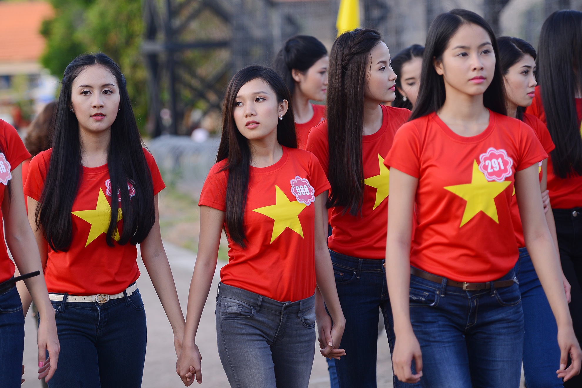 | 38 thí sinh Hoa hậu Việt Nam 2014 mỗi người mang vẻ đẹp riêng biệt, tuy nhiên khi đồng hành cùng nhau trong vòng chung kết thì lợi thế và yếu điểm của các thí sinh lộ khá rõ. Người đẹp Thuỳ Dương khiêm tốn với chiều cao 1m66 xen giữa hai người đẹp Huyền My (1m74) và Ngọc Quý (1m75). |