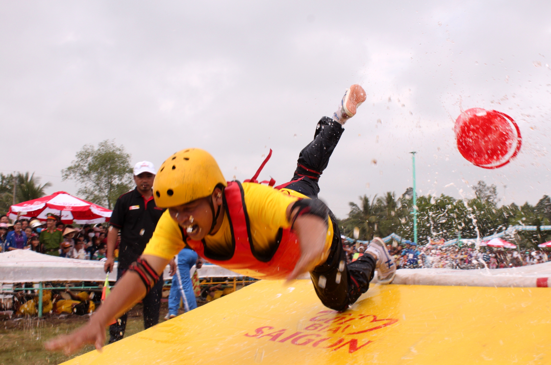 “Người vận chuyển” là trò chơi mở màn nhưng đã khiến các thí sinh của hai đội xã Tân Hòa và Long Thới (huyện Tiểu Cần, Trà Vinh) chật vật mới vượt qua được.