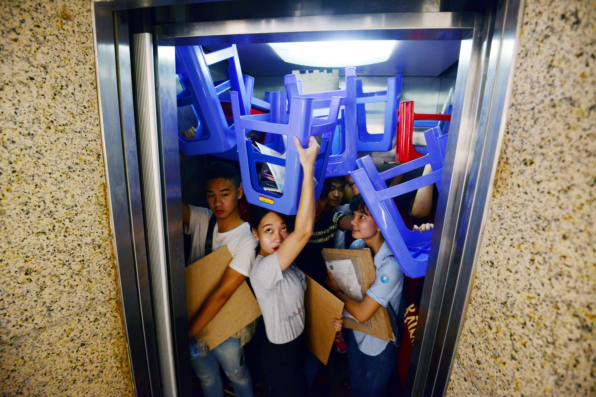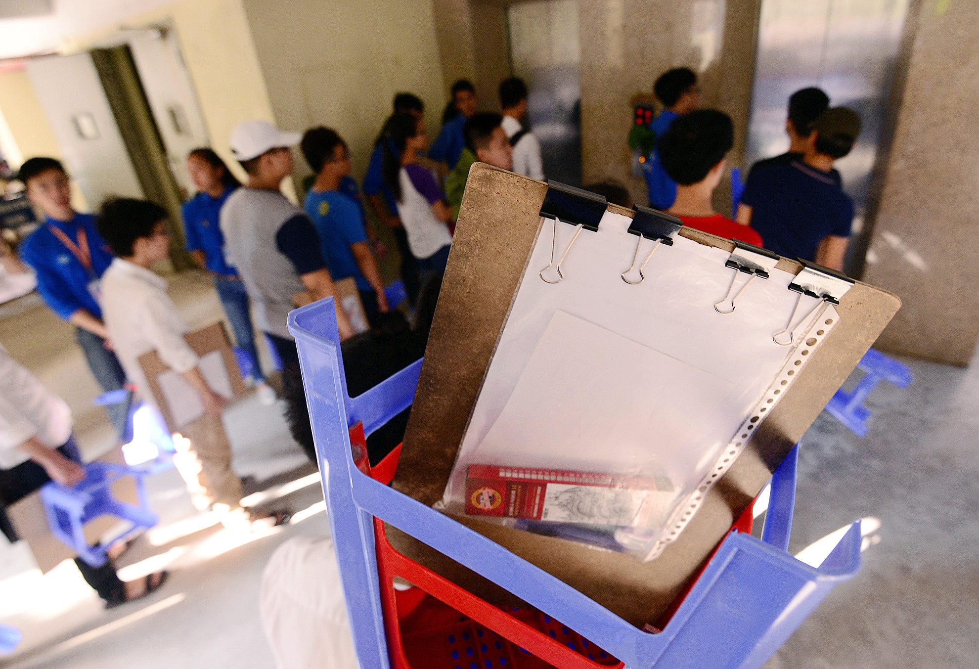 Thang máy được tận dụng để đưa thí sinh lên phòng thi nhanh nhất.