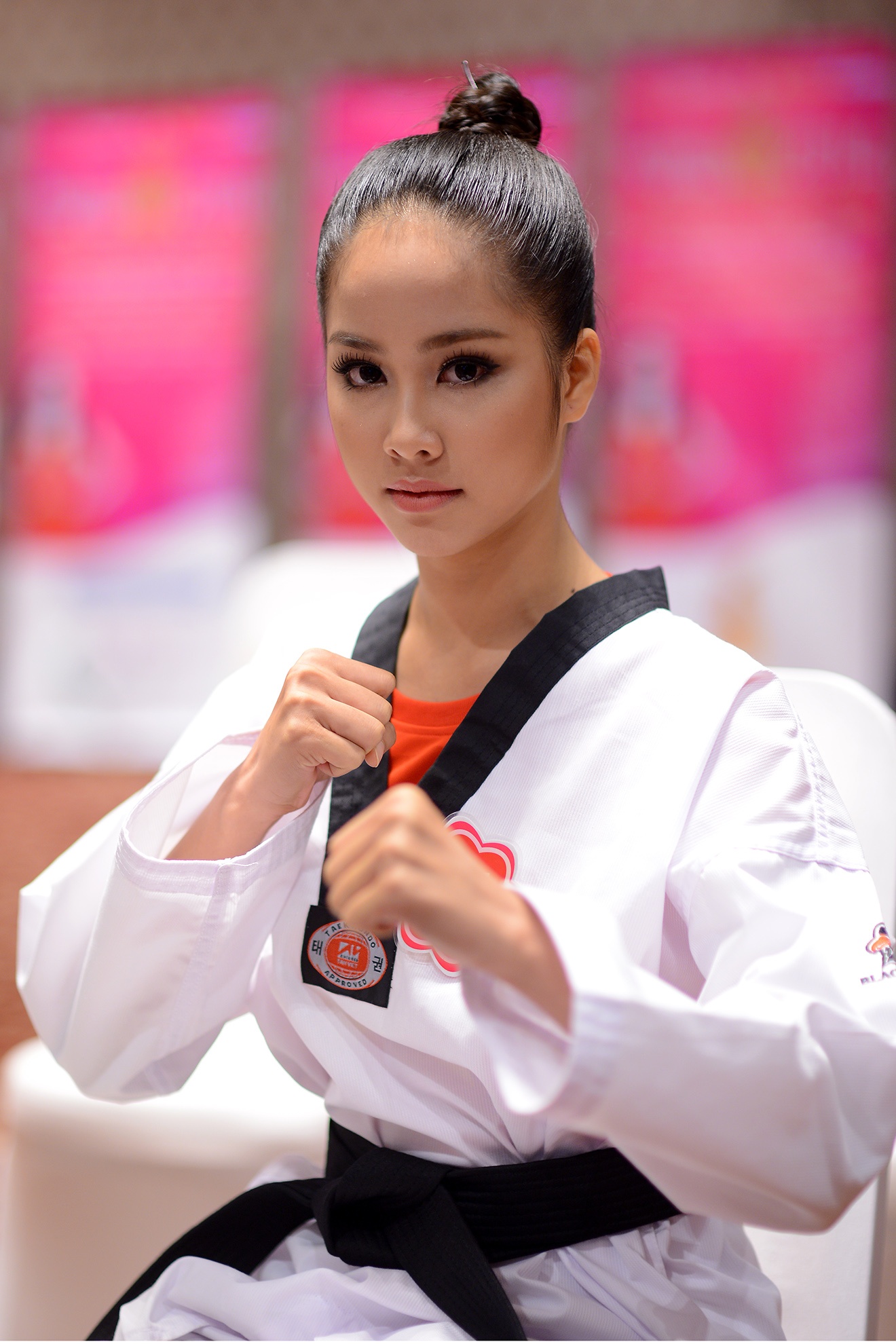 | Cô tham gia thi với màn biểu diễn võ Teakwondo đầy cá tính với những động tác dứt khoát và linh hoạt không thua kém nam giới. |