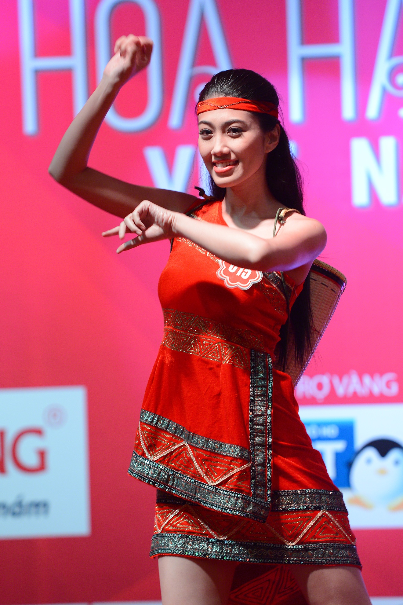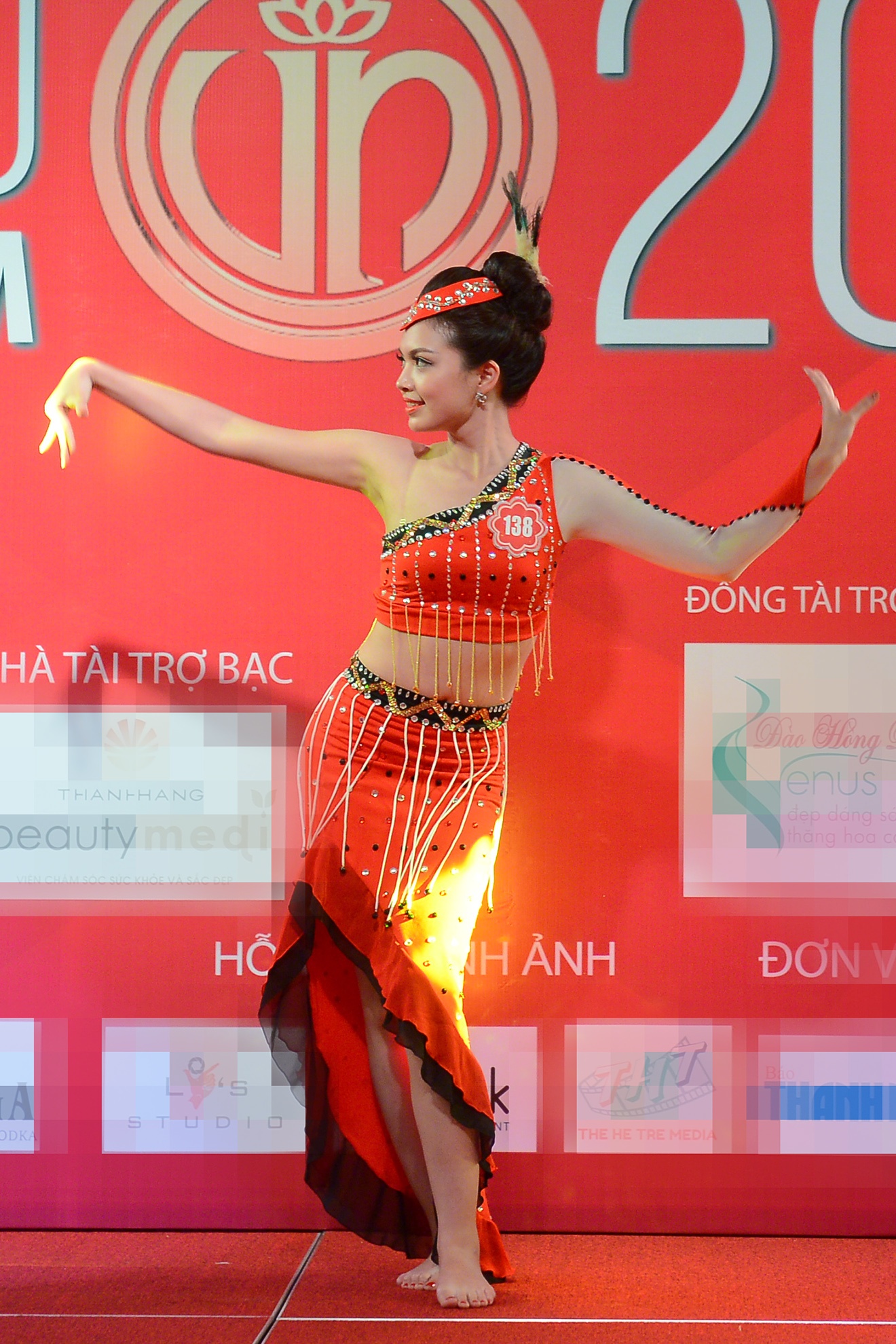 | Đêm sơ khảo tài năng Hoa hậu Việt Nam 2014 đã trở thành sân khấu hội tụ đầy đủ nét văn hoá của mọi miền đất nước từ Bắc vào Nam, từ Tây Nguyên đến Tây Nam Bộ, hay cả miền núi phía Bắc. Ngoài ra còn có cả những những tiết mục mang dấu ấn của sự hội nhập văn hoá phương Tây của giới trẻ như belly dance, hip hop... |
