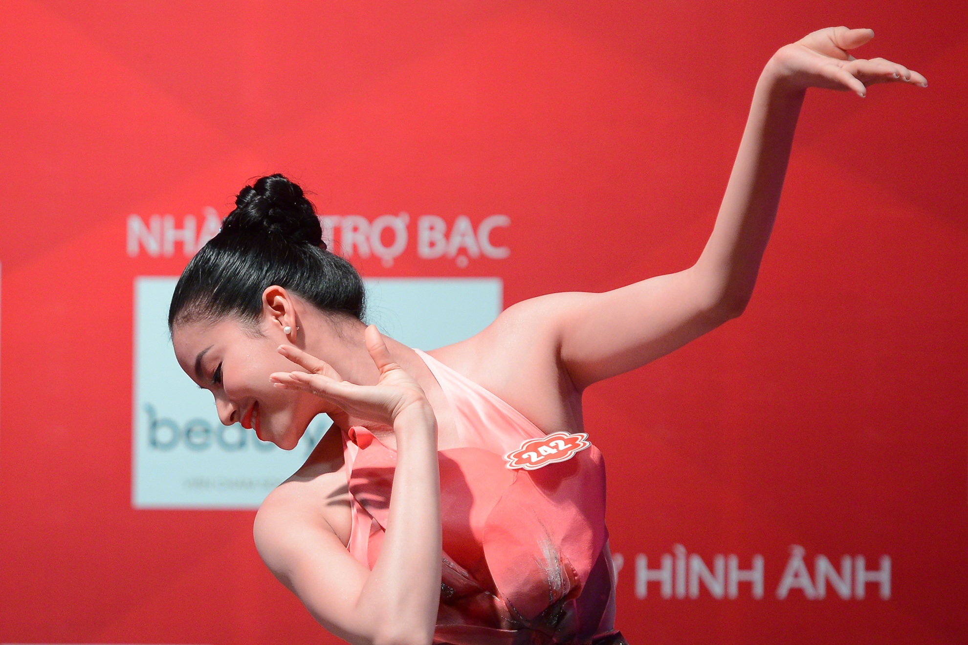 | Người đẹp Huyền My số báo danh 289 với tiết mục múa Sóng lụa ven đô. |