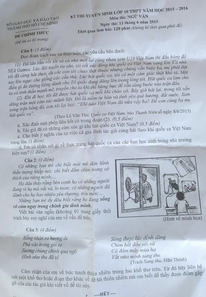 | Đề thi Ngữ văn lớp 10 vào TP HCM. |