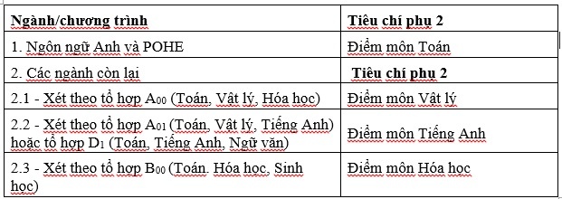 Sau khi sử dụng tiêu chí phụ 1, số thí sinh trúng tuyển vẫn còn và cao hơn so với chỉ tiêu quá 5% (nếu chỉ tiêu > 200) hoặc 8% nếu chỉ tiêu ≤ 200, trường sử dụng tiêu chí phụ 2.