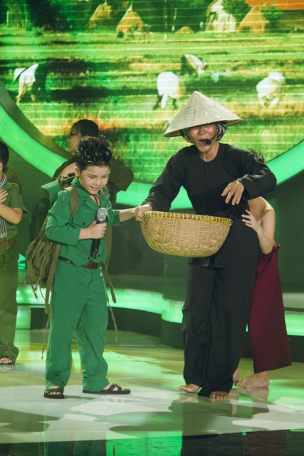 Gia Huy đã thể hiện được một hình ảnh anh Ba Hưng vui vẻ gan dạ, làm hãnh diện cho làng quê trong chương trình Gương mặt thân quen nhí.