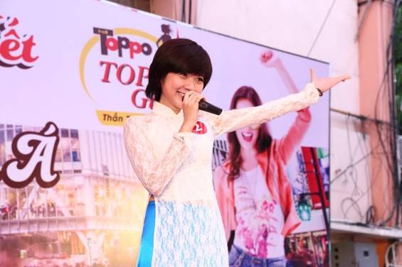 | Cao Ngọc Thùy Anh tự tin biểu diễn ca khúc “Toppo Top Girl” dành tặng riêng cho chương trình. |