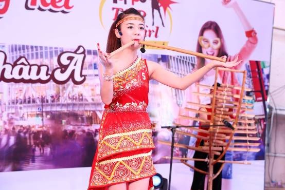 | Thí sinh Nguyễn Thanh Phương “tung chiêu” với màn biểu diễn với 3 loại nhạc cụ dân tộc. |