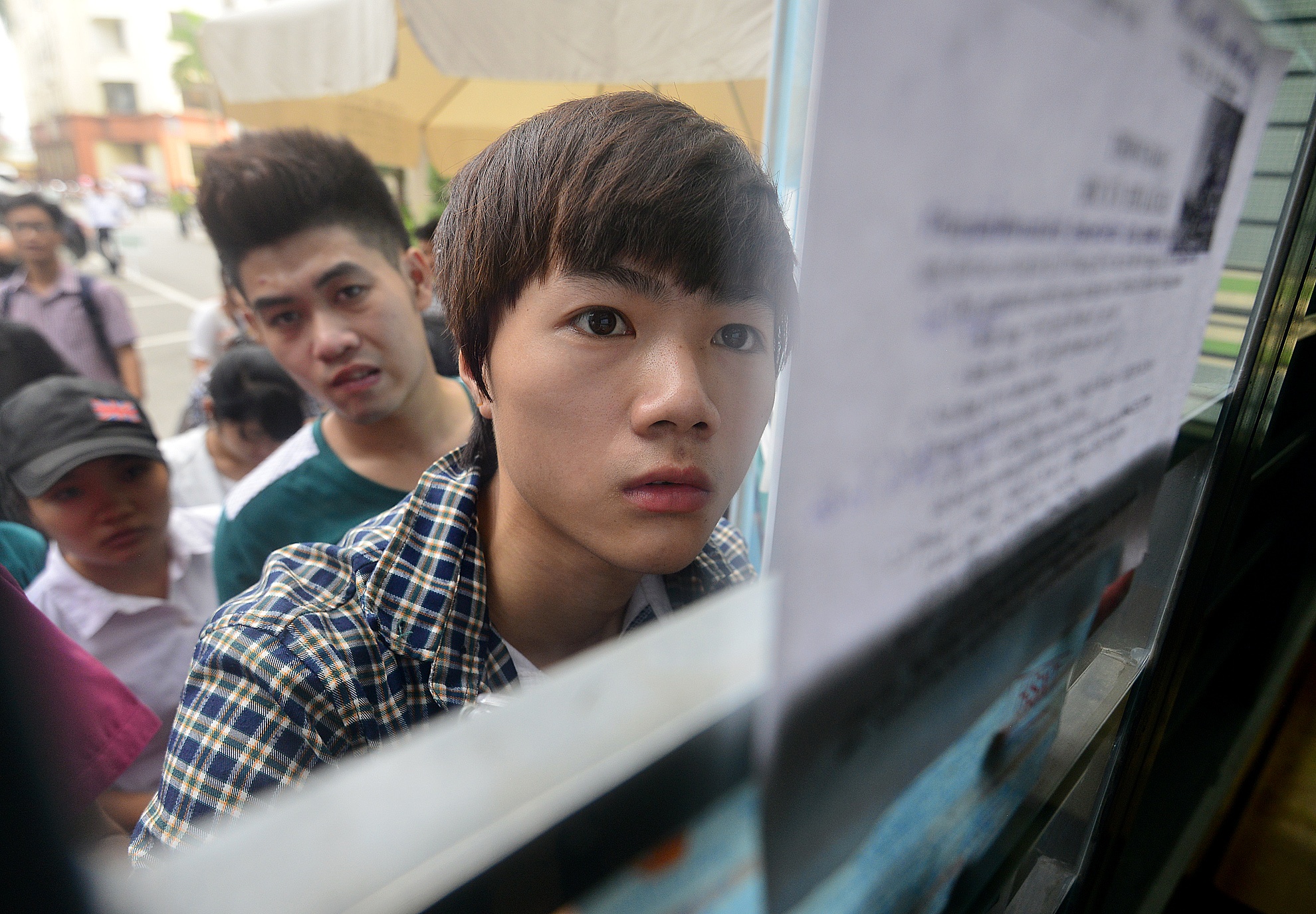 Một ngày trước hạn cuối xét tuyển đại học, cao đẳng đợt 1, nhiều thí sinh đổ về các trường tốp đầu và giữa để rút hồ sơ. Nét lo lắng hiện rõ trên khuôn mặt của nhiều sĩ tử.