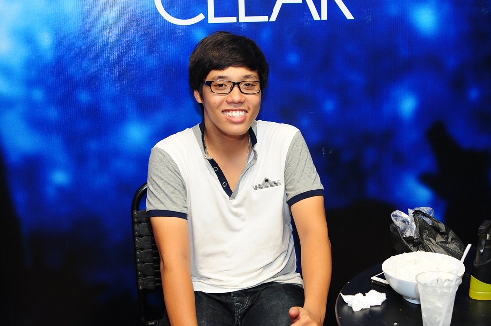 | Top 6 Vietnam Idol 2013 Phú Hiển đến theo dõi đêm thi và cổ vũ hai người chị của mình. |