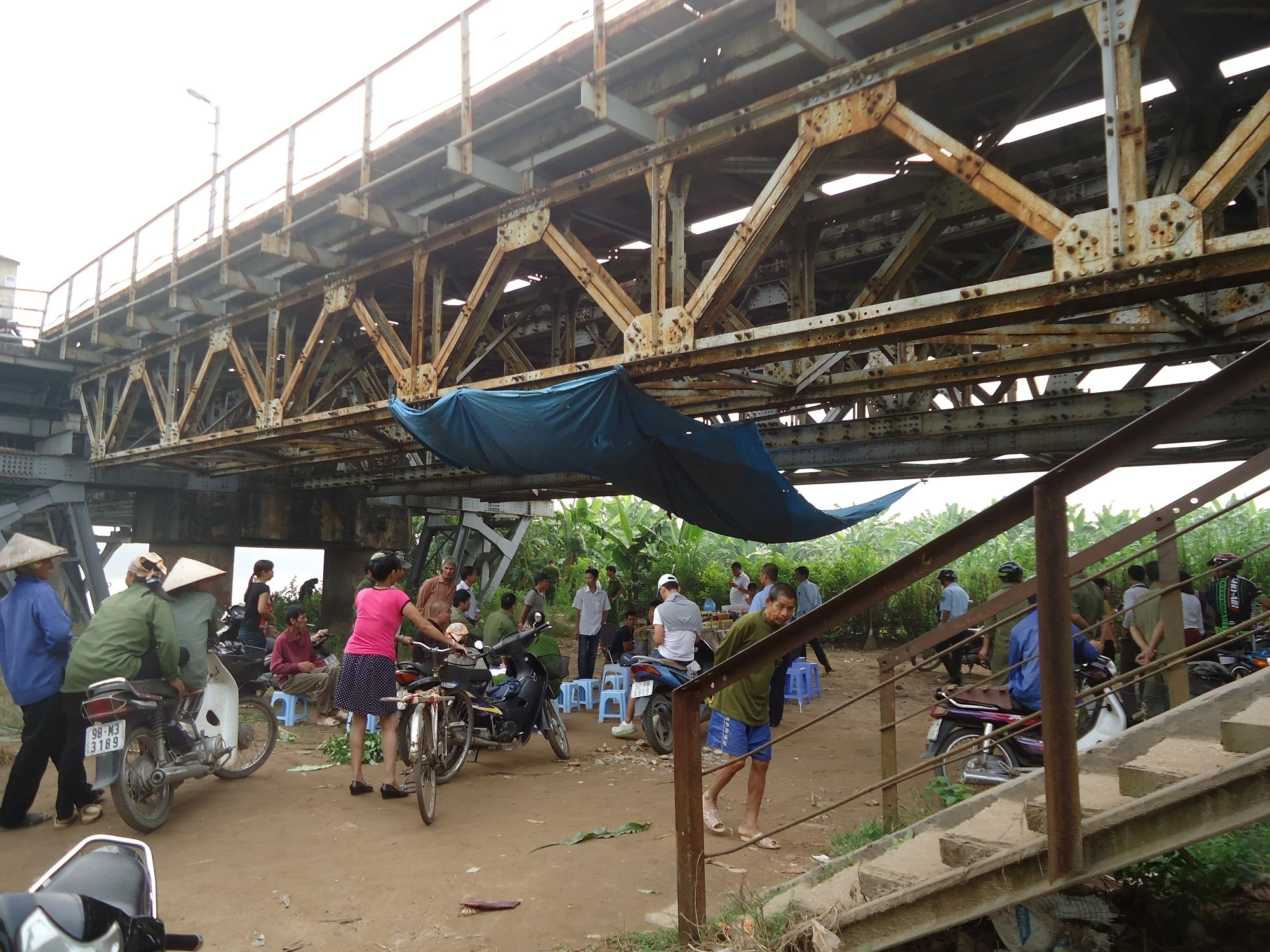 | Sau khi tới hiện trường, lực lượng chức năng đã phong tỏa, dùng bạt che thi thể người xấu số. |