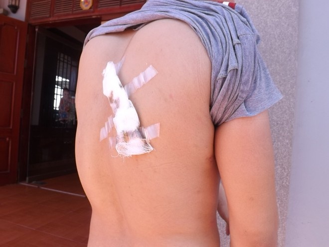 | Vết chém sau lưng của Linh (Ảnh: Phạm Hòa). |
