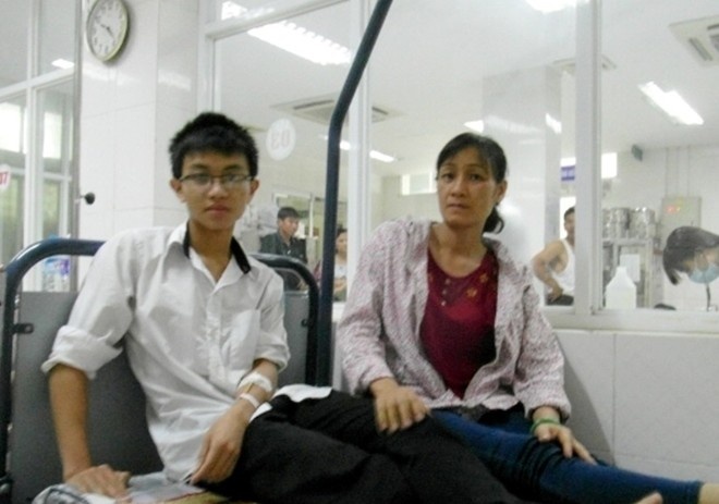 | Đoàn Xuân Tú và mẹ trong bệnh viện 198 (Ảnh: Quyên Quyên). |