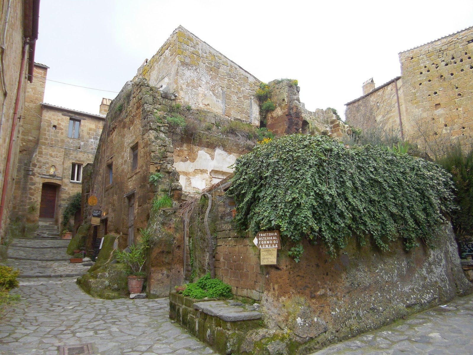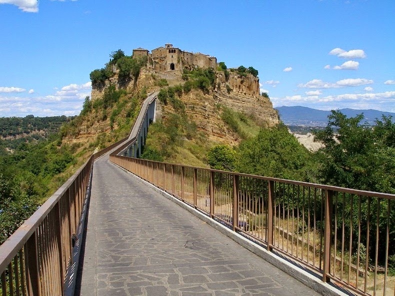Civita di Bagnoregio (Viterbo, Italya) là thị trấn nằm trên đỉnh cao nhất một hẻm núi lớn đang bị xói mòn bởi hai dòng chảy trong thung lũng bên dưới bởi tác động mưa và gió.
