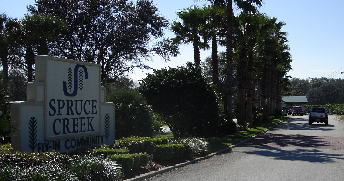 Khoảng 1.300 ngôi nhà tọa lạc ở thị trấn Spruce Creek. Hơn một nửa số gia đình có máy bay và khu nhà chứa riêng. Phi công phải rất cẩn thận khi đáp xuống sân bay Spruce Creek vì nó nằm ngay sát khu dân cư. |