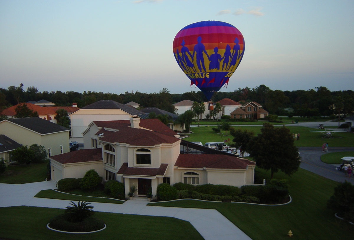 Một số hộ dân ở thị trấn còn mua khinh khí cầu và neo chúng ở sân sau. |