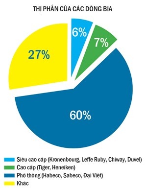 Các doanh nghiệp đang cạnh tranh rất gay gắt để giữ được thị phần. Sức ép của các hãng bia ngoại buộc các hãng bia trong nước phải mở rộng ra nhiều phân khúc, trong đó có phân khúc cao cấp. Định vị là sản phẩm cao cấp nên Heineken, Sapporo, Tiger, Budweiser đều có giá trị thương mại và lợi nhuận cao hơn dù sản lượng tiêu thụ chưa chiếm ưu thế.
