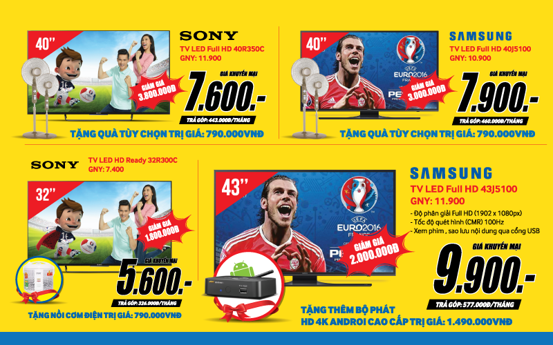 Ngay từ đầu tháng 5, chương trình Cuồng nhiệt cùng EURO 2016 đã được Hệ thống thế giới điện máy MediaMart công bố nhằm hỗ trợ người tiêu dùng mua sắm được các sản phẩm TV LED, TV Kingsize chính hãng, model mới với mức ngân sách tiết kiệm tối đa.