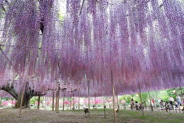 Không ít người đến công viên hoa Ashikaga ở Nhật Bản đã mê đắm sắc tím của hoa Tử Đằng hay còn gọi là hoa tình ái.