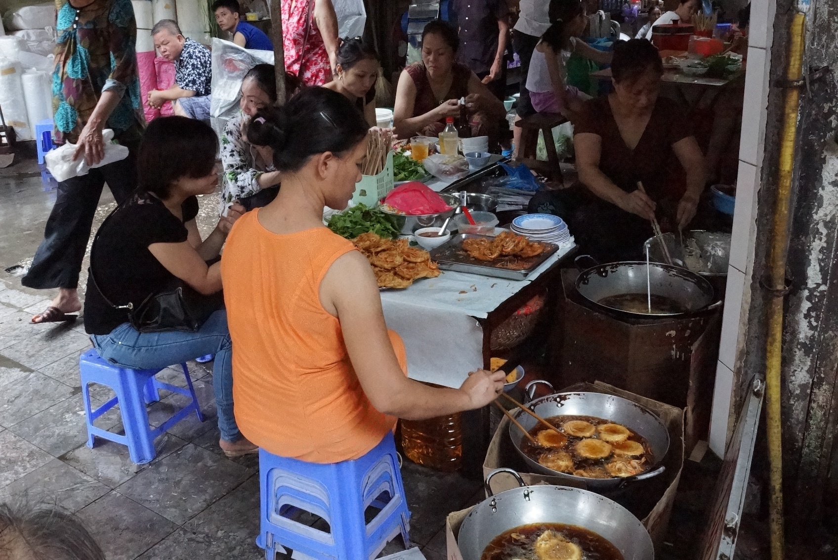| Dù ngõ chợ nhỏ nhưng hầu hết các hàng quán đều chế biến thức ăn tại chỗ. Đây cũng là cách để các chủ quán chứng minh đồ ăn nhà mình được chế biến từ các nguyên liệu tươi ngon, đảm bảo vệ sinh và hoàn toàn thủ công, hợp mốt "tìm về món xưa" của người Hà Nội. |
