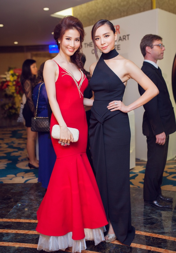 | Tối ngày 9/10, Dương Trương Thiên Lý cùng một số người đẹp Hoa hậu Hoàn vũ Việt Nam 2015 tham dự sự kiện tại TP HCM. Ở chương trình, á hậu vui vẻ khi hội ngộ Diễm My. Nữ diễn viên Gái già lắm chiêu khoe dáng quyến rũ trong bộ đầm đuôi cá tông đỏ bắt mắt. |