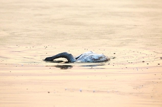 | Xác con thiên nga trên hồ sau khi nó tự sát. |