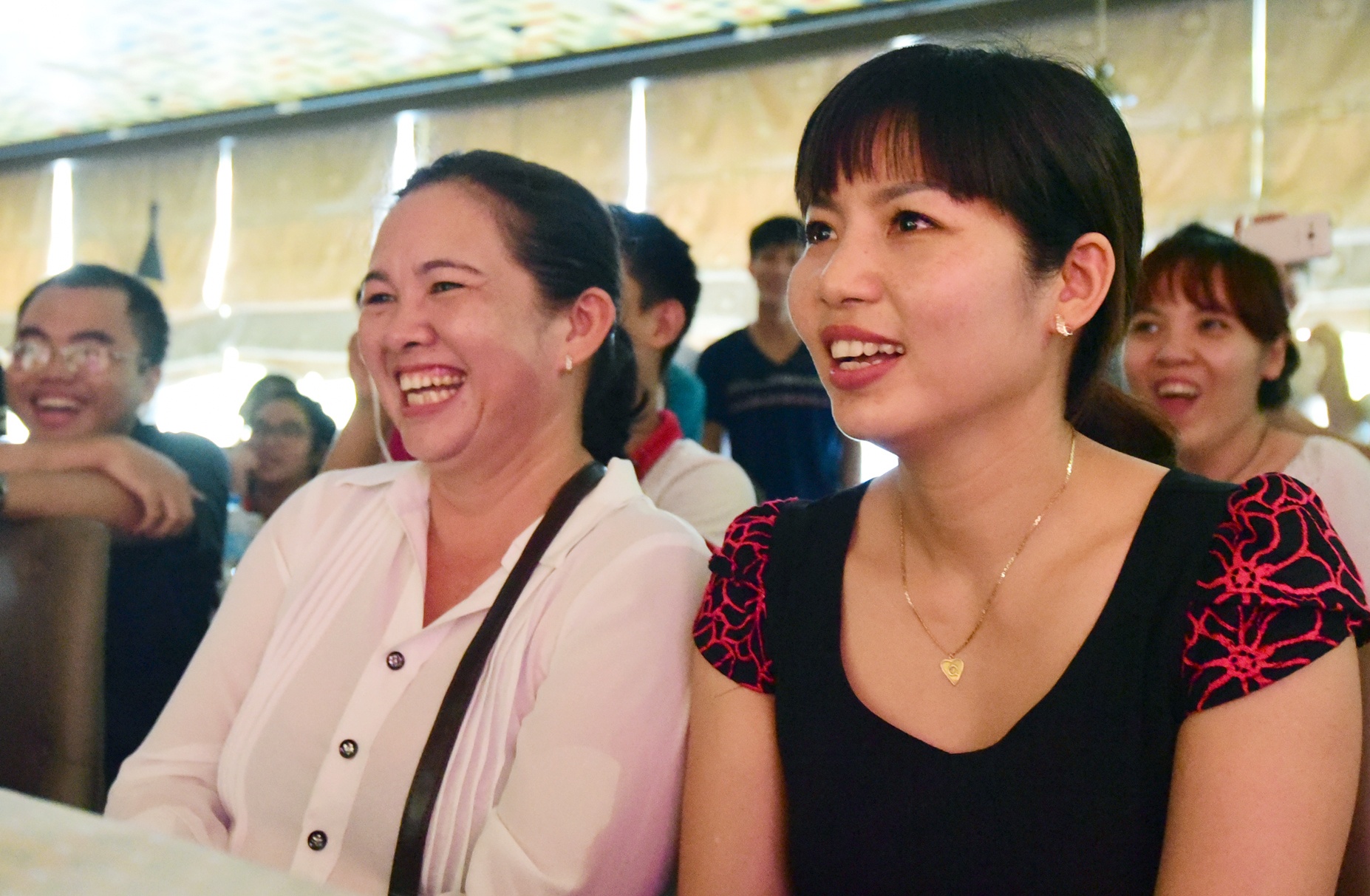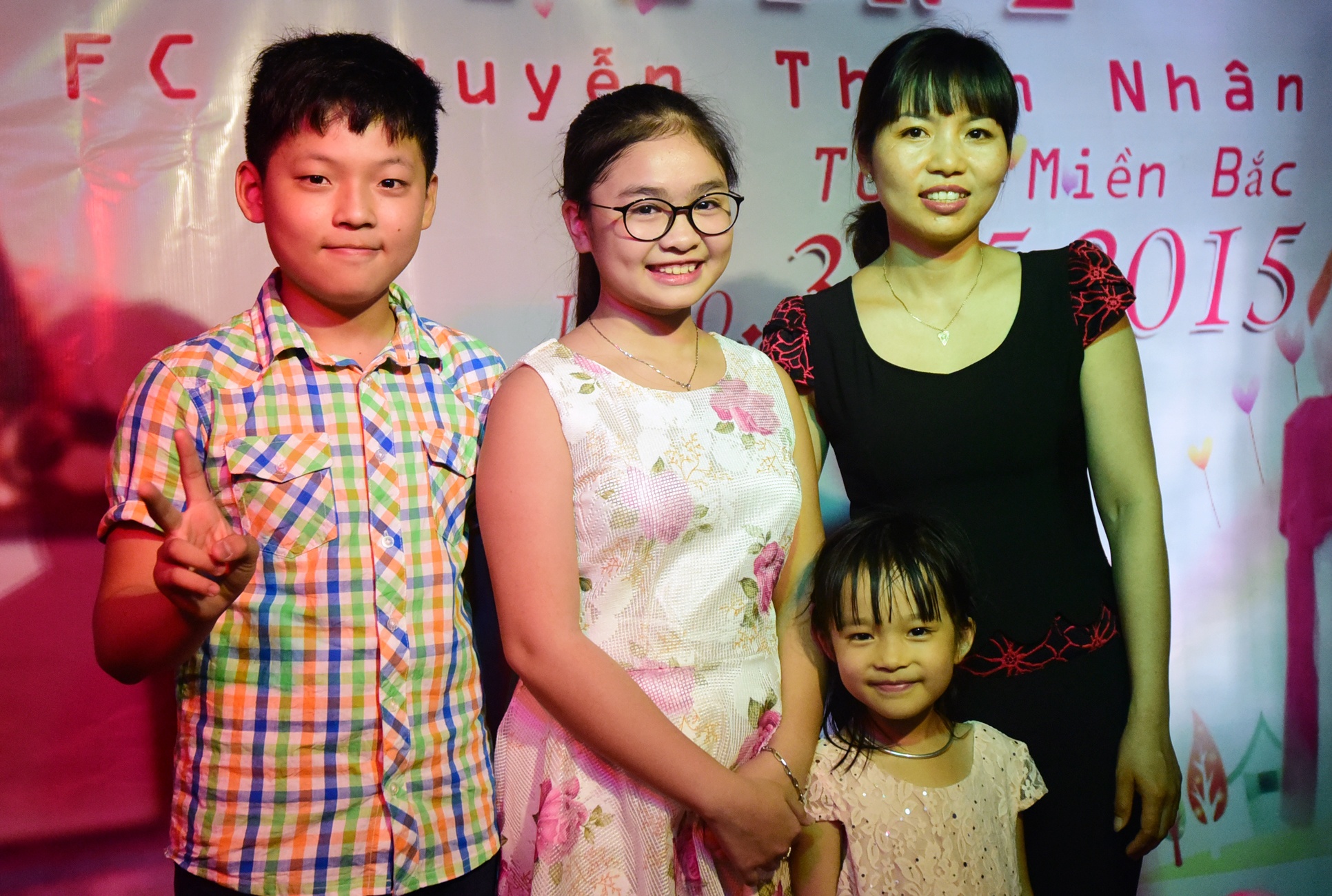 Mẹ của Thiện Nhân (trái) và mẹ Mai Chí Công hãnh diện ngắm nhìn các con giao lưu trên sân khấu. Để có mặt tại Hà Nội cổ vũ con gái, mẹ của Thiện Nhân phải bỏ dở công việc đồng áng ở quê nhà Bình Định.