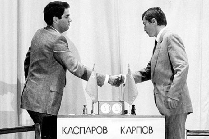 | Garry Kasparov và Anatoly Karpov tranh chức vô địch cờ vua thế giới năm 1985. Ảnh: Biography |
