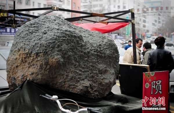 Ngày 17/12 vừa qua bức ảnh chụp mảnh thiên thạch khổng lồ được trưng bày ở Tân Cương đã khiến nhiều người vô cùng thích thú. Mảnh thiên thạch nặng khoảng 2 tấn, được phát hiện dưới đáy vực sâu 7 m ở khu Altay, Tân Cương. Mảnh thiên thạch này có từ tính, nam châm có thể bị “hút” vào bề mặt của nó.