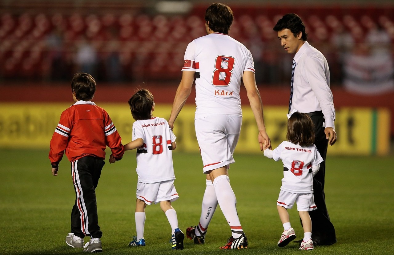Sau chiến thắng 3-1 của Sao Paulo trước Victoria tại giải vô địch Brazil, cựu tiền vệ Milan hãnh diện đưa cả 2 con xuống sân mừng chiến thắng. Trong khi anh lớn Luca (6 tuổi) khá thoải mái và tự tin thì cô em Isabella (3 tuổi) lại tỏ ra sợ sệt và rụt rè khi xuất hiện trước đám đông người hâm mộ.