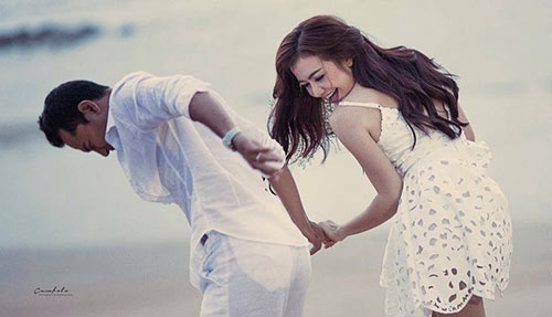 | Huỳnh Đông và Ái Châu hạnh phúc trong ảnh cưới. |