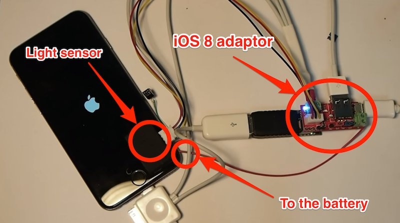 IP-BOX kết nối trực tiếp với nguồn của iPhone, nhanh chóng đưa điện thoại vào trạng thái “ngủ đông” trước khi thiết bị biết rằng mật khẩu bị nhập sai.