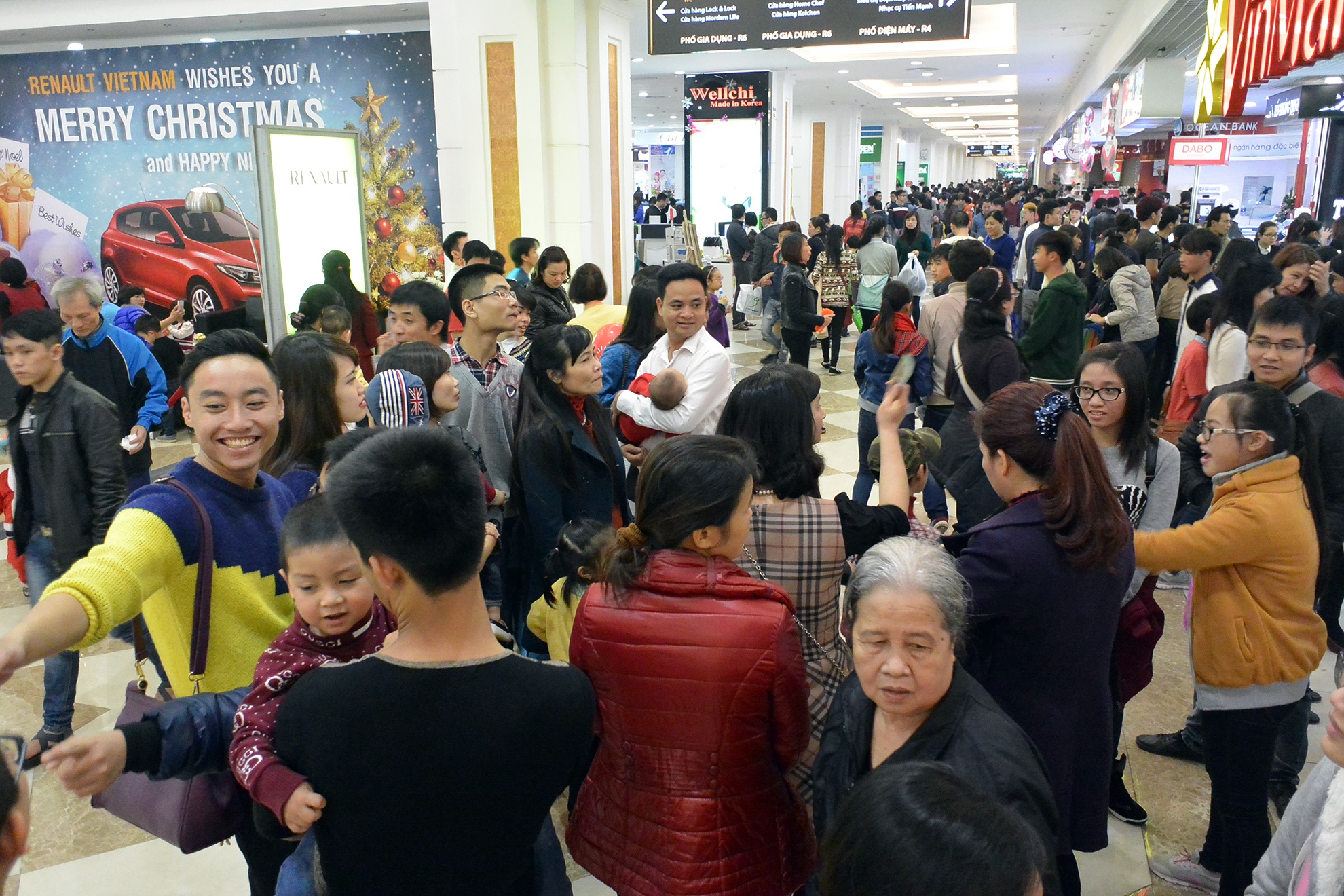 | Sáng 1/1, các trung tâm thương mại lớn tại Hà Nội đã đón tiếp hàng nghìn lượt người dân đổ về dạo chơi, mua sắm và ăn uống. |