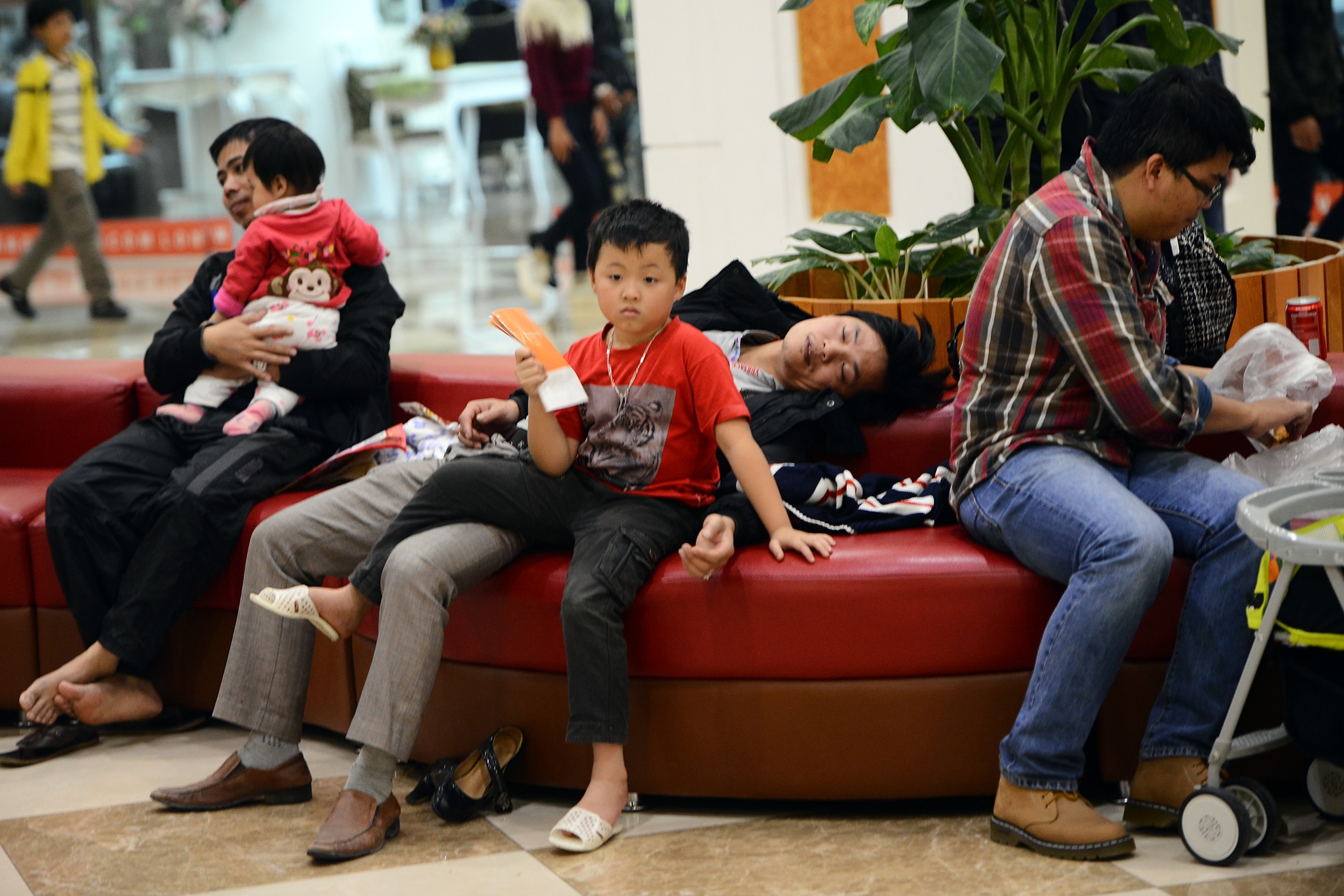 | Không ít người mệt mỏi nằm ngủ vạ vật ngay giữa trung tâm thương mại lớn. |