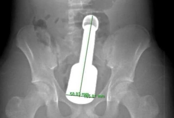 | Chiếc chày được lấy ra từ hậu môn của bệnh nhân. |
