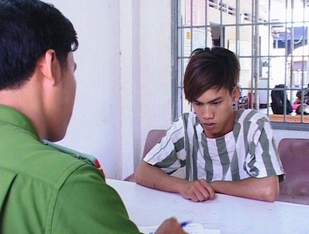 | Lộc trả lời các câu hỏi của cán bộ điều tra. |