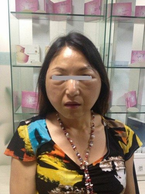 | Sau khi phẫu thuật thẩm mỹ, khuôn mặt của Dư Liên chảy xệ và nhăn nheo như bà lão. |