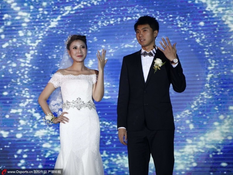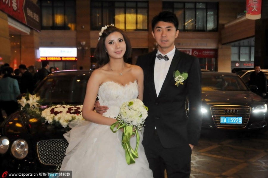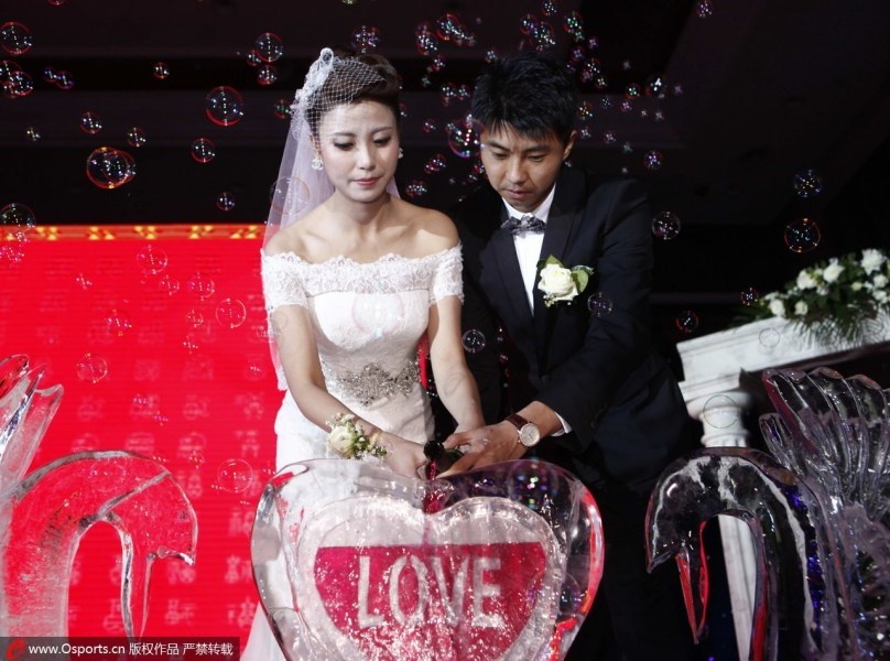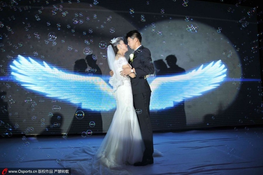 Sau màn cầu hôn lãng mạn ngay trên sân cỏ hồi cuối tháng 10, đám cưới của ngôi sao bóng đá Trung Quốc Cao Tianbao diễn ra trong sự hân hoan chúc phúc của người hâm mộ.