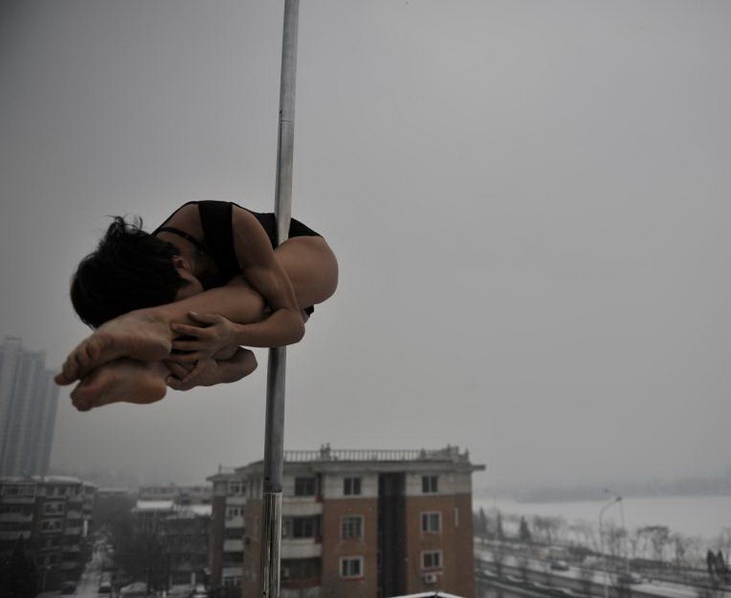 | Một động tác khó của học viên múa cột. Ảnh: China News. |